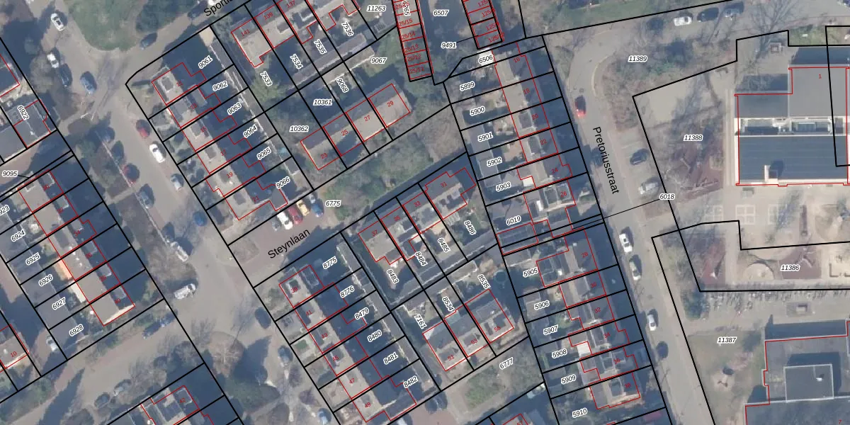 Gebruik de zoekbalk of klik op een perceel voor informatie over de adressen binnen dit perceel.