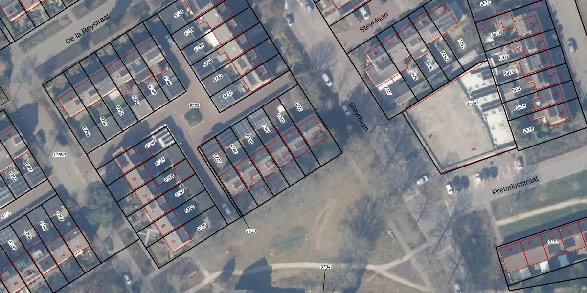 Het perceel waarop Steynlaan 56 staat heeft een oppervlakte van 177 m². Dit is een middelgroot perceel. De perceeloppervlakte wordt geregistreerd door het Kadaster. Gedetailleerde informatie over de maten van dit perceel kunt u vinden in het rapport Kadastrale kaart met maatvoering van Steynlaan 56.