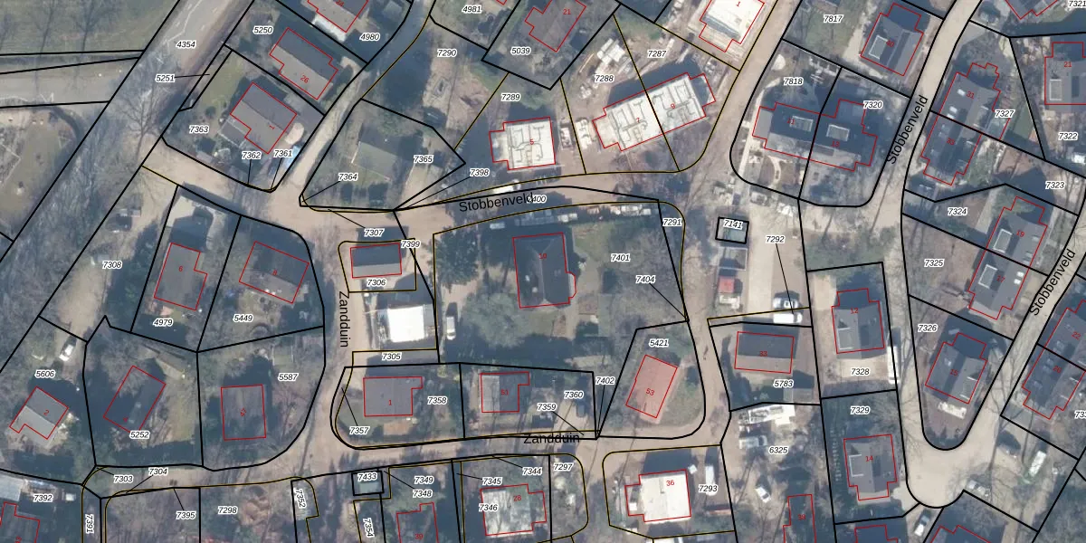 Gebruik de zoekbalk of klik op een perceel voor informatie over de adressen binnen dit perceel.