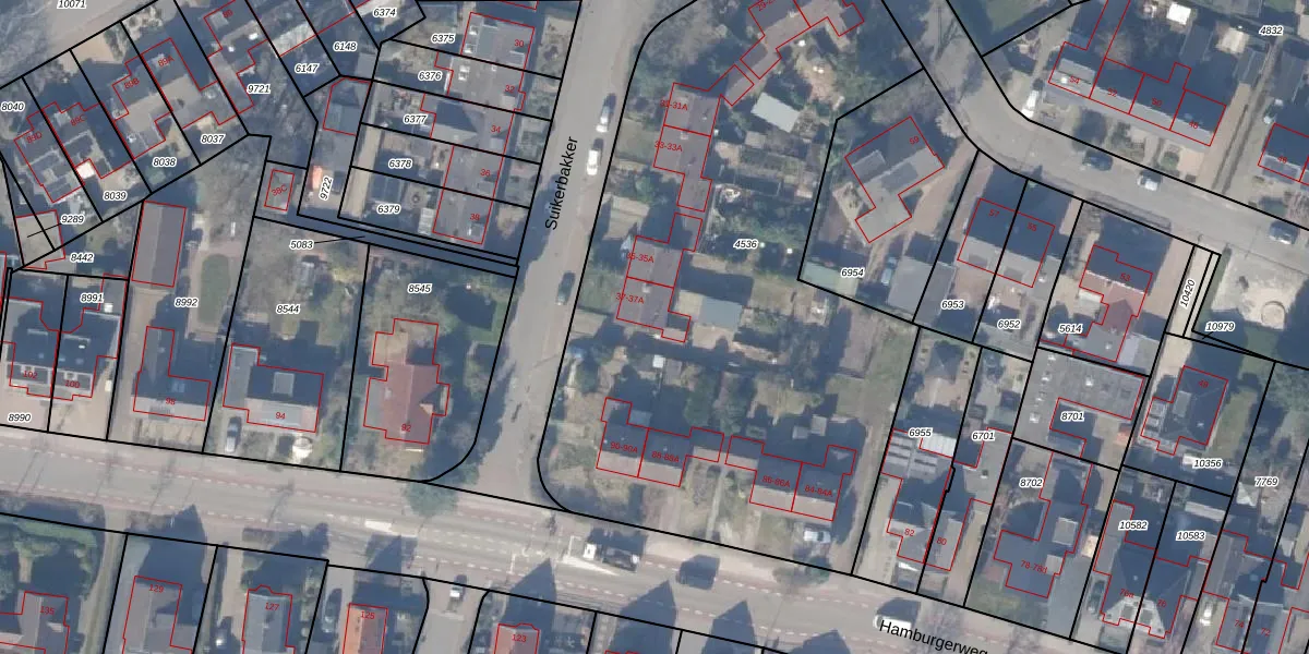 Het perceel waarop Suikerbakker 37-A staat heeft een oppervlakte van 3710 m². Dit is een zeer groot perceel. De perceeloppervlakte wordt geregistreerd door het Kadaster. Gedetailleerde informatie over de maten van dit perceel kunt u vinden in het rapport Kadastrale kaart met maatvoering van Suikerbakker 37-A.