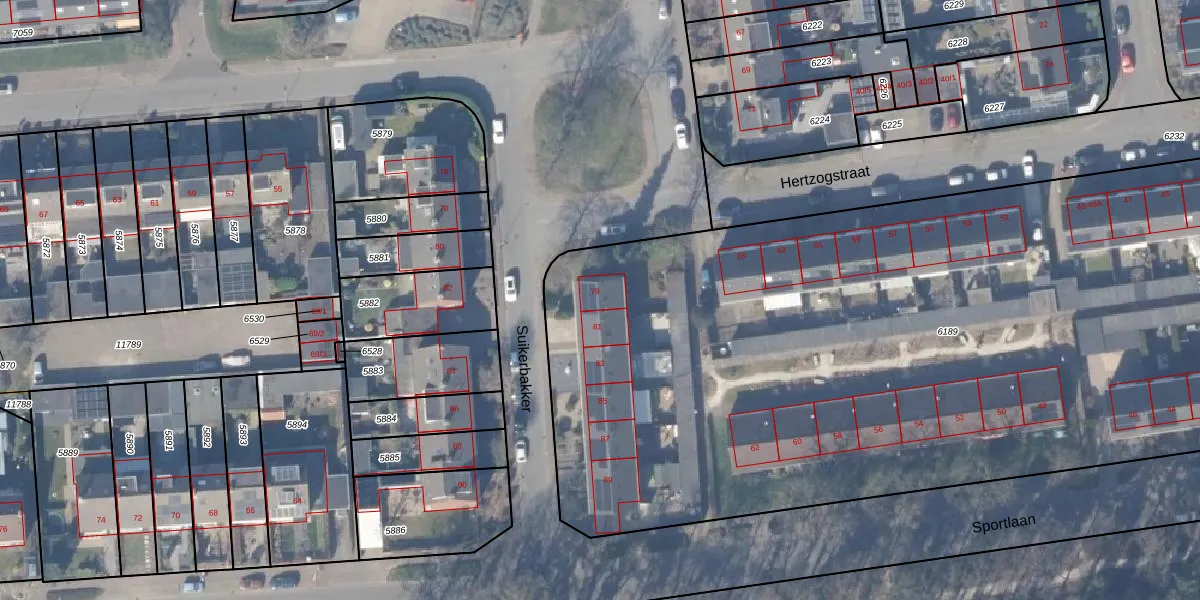 Het perceel waarop Suikerbakker 79 staat heeft een oppervlakte van 5813 m². Dit is een zeer groot perceel. De perceeloppervlakte wordt geregistreerd door het Kadaster. Gedetailleerde informatie over de maten van dit perceel kunt u vinden in het rapport Kadastrale kaart met maatvoering van Suikerbakker 79.