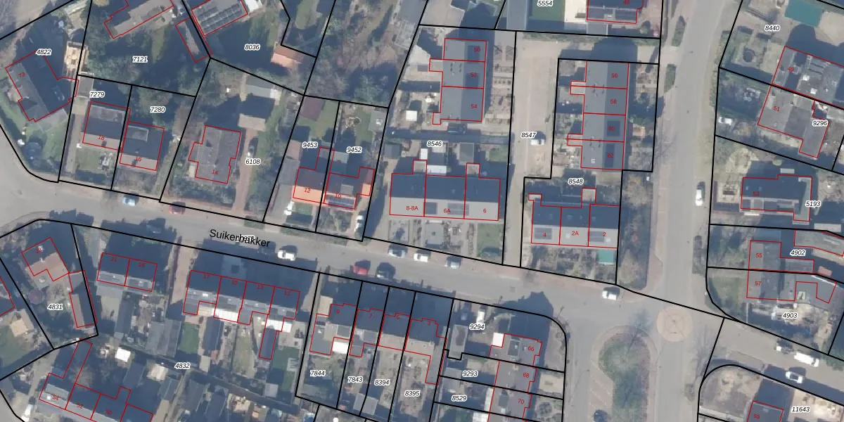 Het perceel waarop Suikerbakker 8 staat heeft een oppervlakte van 1555 m². Dit is een zeer groot perceel. De perceeloppervlakte wordt geregistreerd door het Kadaster. Gedetailleerde informatie over de maten van dit perceel kunt u vinden in het rapport Kadastrale kaart met maatvoering van Suikerbakker 8.