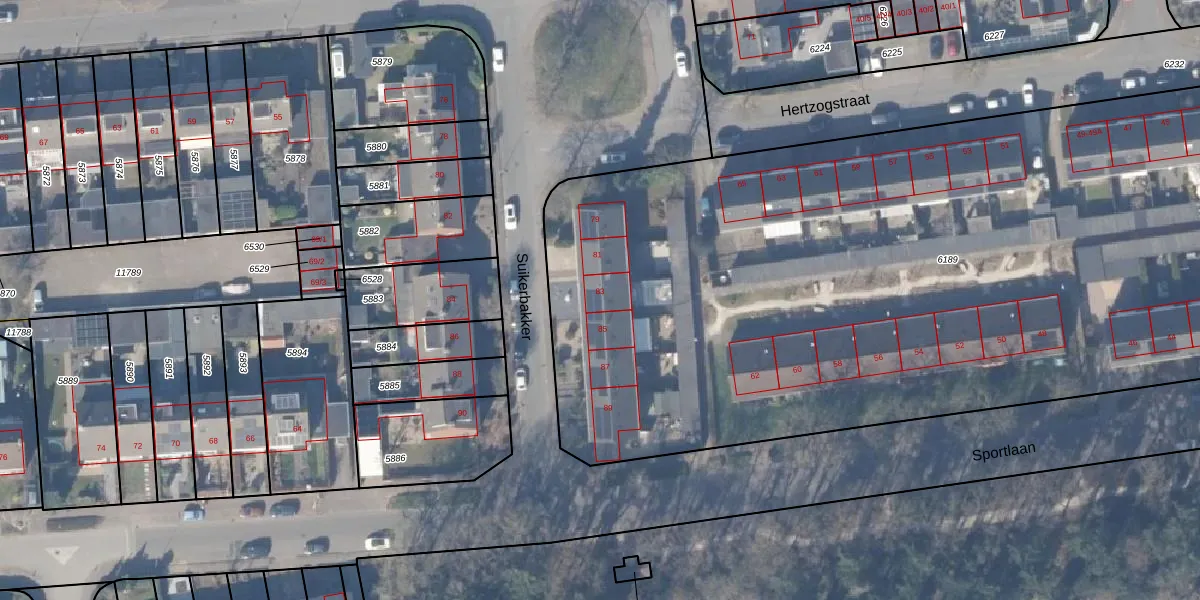 Het perceel waarop Suikerbakker 83 staat heeft een oppervlakte van 5813 m². Dit is een zeer groot perceel. De perceeloppervlakte wordt geregistreerd door het Kadaster. Gedetailleerde informatie over de maten van dit perceel kunt u vinden in het rapport Kadastrale kaart met maatvoering van Suikerbakker 83.