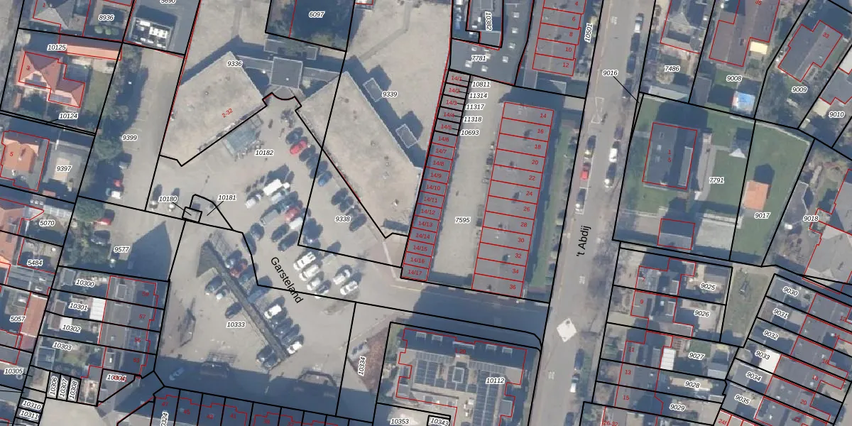 Het perceel waarop 't Abdij 14-12 staat heeft een oppervlakte van 1633 m². Dit is een zeer groot perceel. De perceeloppervlakte wordt geregistreerd door het Kadaster. Gedetailleerde informatie over de maten van dit perceel kunt u vinden in het rapport Kadastrale kaart met maatvoering van 't Abdij 14-12.