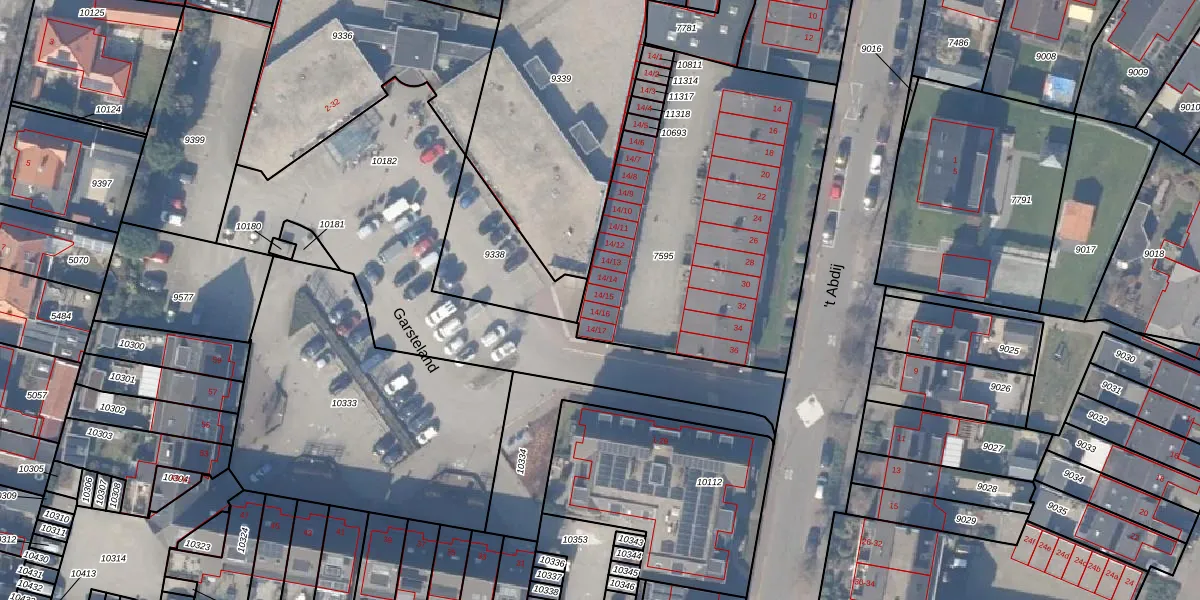 Het perceel waarop 't Abdij 14-15 staat heeft een oppervlakte van 1633 m². Dit is een zeer groot perceel. De perceeloppervlakte wordt geregistreerd door het Kadaster. Gedetailleerde informatie over de maten van dit perceel kunt u vinden in het rapport Kadastrale kaart met maatvoering van 't Abdij 14-15.