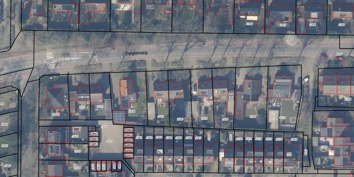 Het perceel waarop Telgterweg 149 staat heeft een oppervlakte van 414 m². Dit is een groot perceel. De perceeloppervlakte wordt geregistreerd door het Kadaster. Gedetailleerde informatie over de maten van dit perceel kunt u vinden in het rapport Kadastrale kaart met maatvoering van Telgterweg 149.