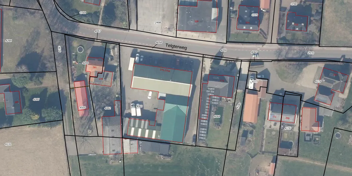 Het perceel waarop Telgterweg 275 staat heeft een oppervlakte van 2341 m². Dit is een zeer groot perceel. De perceeloppervlakte wordt geregistreerd door het Kadaster. Gedetailleerde informatie over de maten van dit perceel kunt u vinden in het rapport Kadastrale kaart met maatvoering van Telgterweg 275.