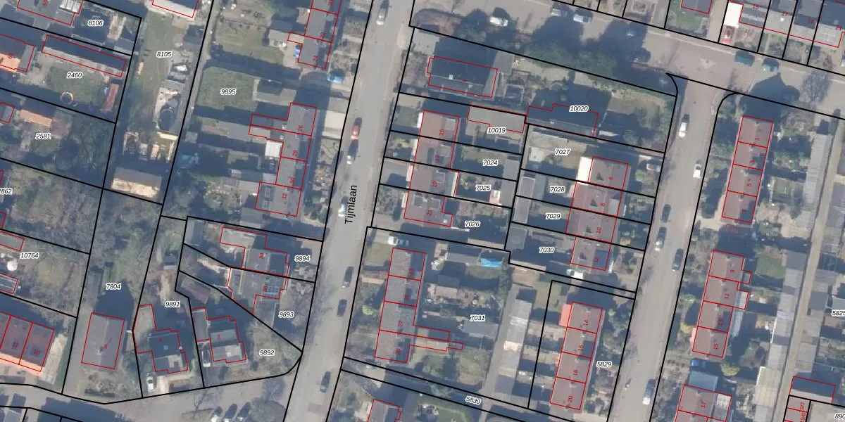 Gebruik de zoekbalk of klik op een perceel voor informatie over de adressen binnen dit perceel.
