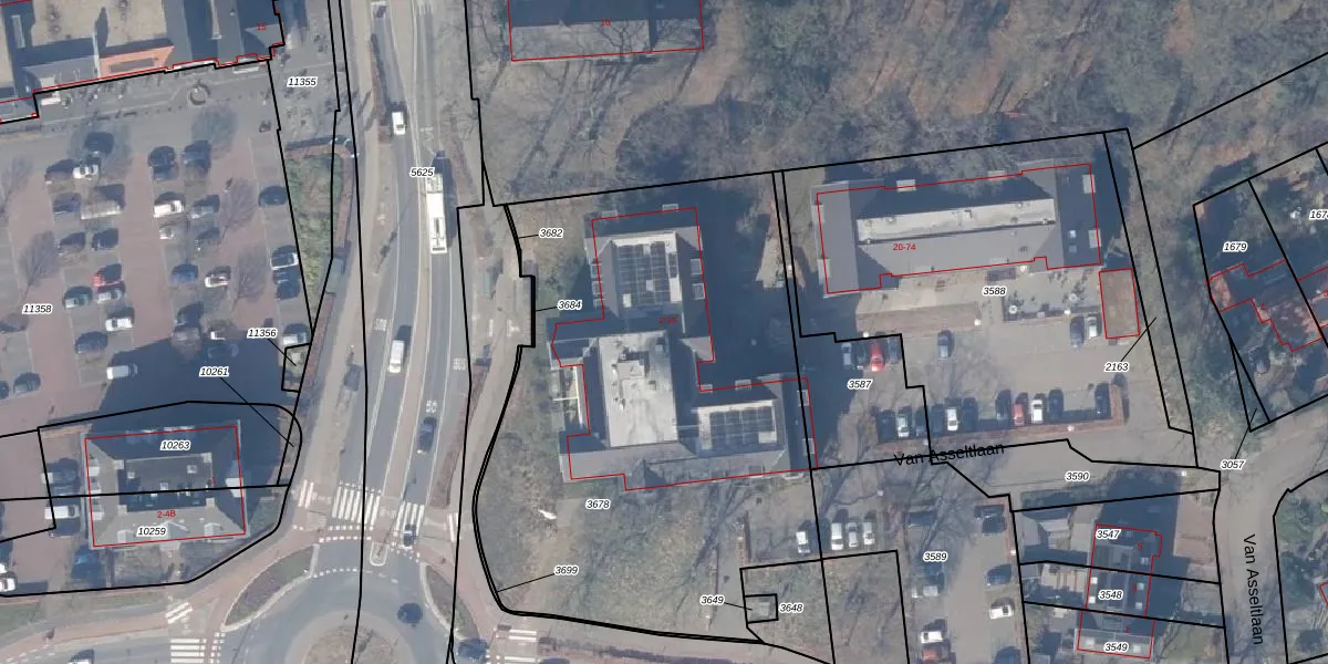 Het perceel waarop Van Asseltlaan 10 staat heeft een oppervlakte van 2869 m². Dit is een zeer groot perceel. De perceeloppervlakte wordt geregistreerd door het Kadaster. Gedetailleerde informatie over de maten van dit perceel kunt u vinden in het rapport Kadastrale kaart met maatvoering van Van Asseltlaan 10.