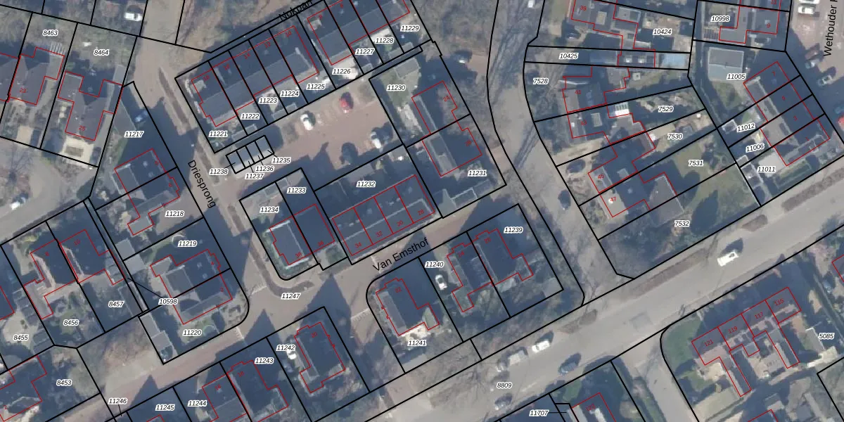 Het perceel waarop Van Emsthof 28 staat heeft een oppervlakte van 474 m². Dit is een groot perceel. De perceeloppervlakte wordt geregistreerd door het Kadaster. Gedetailleerde informatie over de maten van dit perceel kunt u vinden in het rapport Kadastrale kaart met maatvoering van Van Emsthof 28.