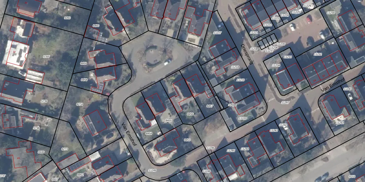 Gebruik de zoekbalk of klik op een perceel voor informatie over de adressen binnen dit perceel.