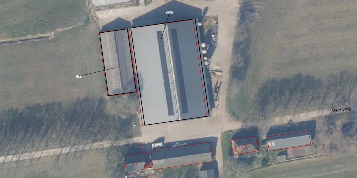 Het perceel waarop Veenweg 171 staat heeft een oppervlakte van 2011 m². Dit is een zeer groot perceel. De perceeloppervlakte wordt geregistreerd door het Kadaster. Gedetailleerde informatie over de maten van dit perceel kunt u vinden in het rapport Kadastrale kaart met maatvoering van Veenweg 171.