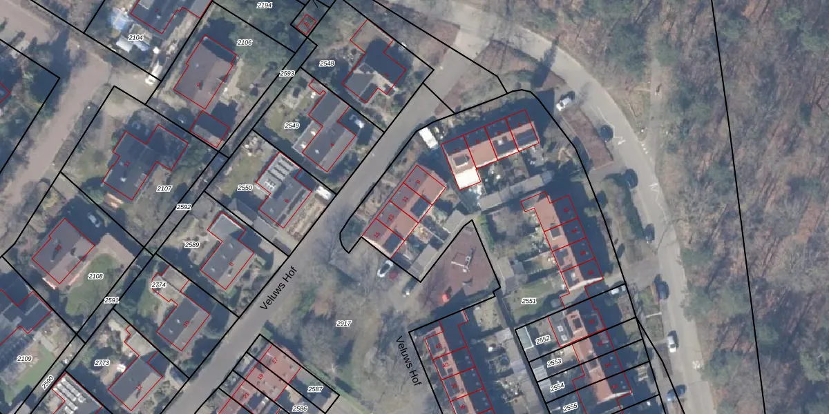 Het perceel waarop Veluws Hof 11 staat heeft een oppervlakte van 3555 m². Dit is een zeer groot perceel. De perceeloppervlakte wordt geregistreerd door het Kadaster. Gedetailleerde informatie over de maten van dit perceel kunt u vinden in het rapport Kadastrale kaart met maatvoering van Veluws Hof 11.