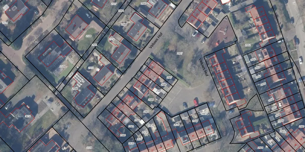 Veluws Hof 19 is gelegen op kadastraal perceel EML00E2586. Deze kadastrale aanduiding is uniek en wordt gebruikt door het Kadaster om eigendomsrechten en andere zakelijke rechten vast te leggen. Het perceel maakt onderdeel uit van de kadastrale gemeente Ermelo.