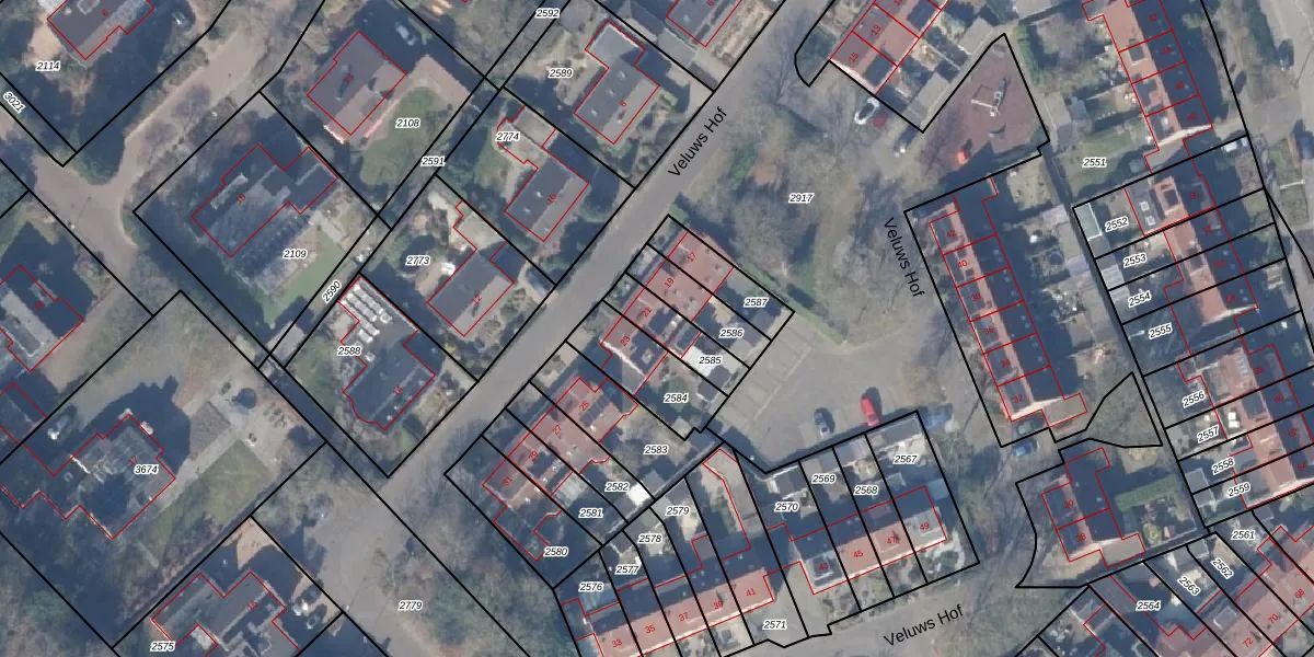 Veluws Hof 21 is gelegen op kadastraal perceel EML00E2585. Deze kadastrale aanduiding is uniek en wordt gebruikt door het Kadaster om eigendomsrechten en andere zakelijke rechten vast te leggen. Het perceel maakt onderdeel uit van de kadastrale gemeente Ermelo.
