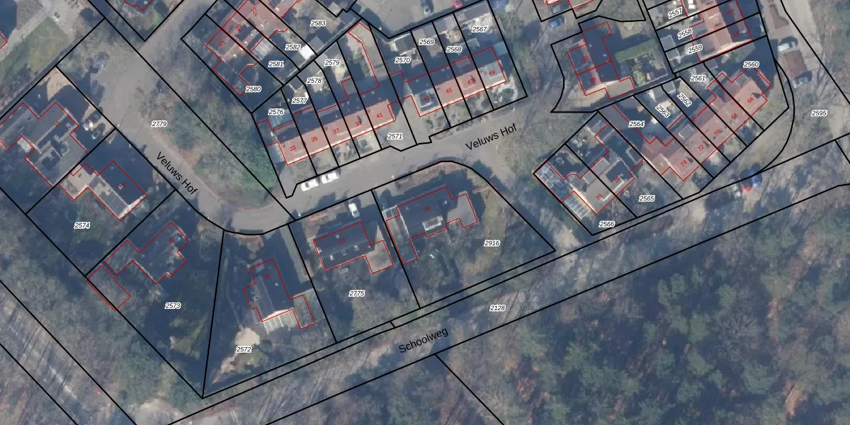 Het perceel waarop Veluws Hof 26 staat heeft een oppervlakte van 840 m². Dit is een groot perceel. De perceeloppervlakte wordt geregistreerd door het Kadaster. Gedetailleerde informatie over de maten van dit perceel kunt u vinden in het rapport Kadastrale kaart met maatvoering van Veluws Hof 26.