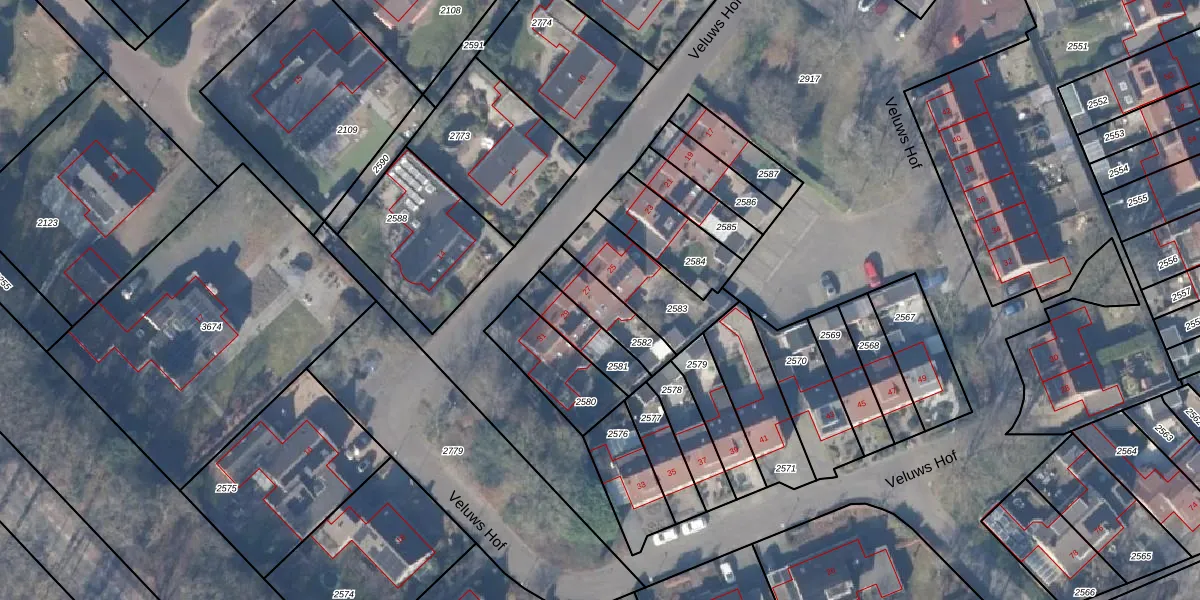 Veluws Hof 27 is gelegen op kadastraal perceel EML00E2582. Deze kadastrale aanduiding is uniek en wordt gebruikt door het Kadaster om eigendomsrechten en andere zakelijke rechten vast te leggen. Het perceel maakt onderdeel uit van de kadastrale gemeente Ermelo.
