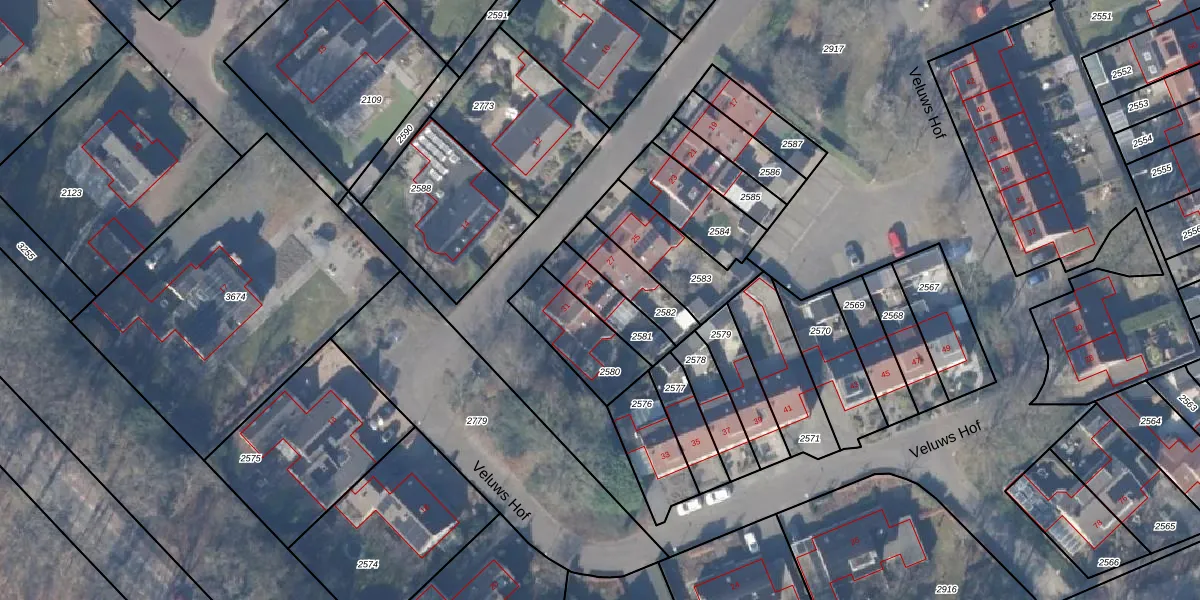 Veluws Hof 29 is gelegen op kadastraal perceel EML00E2581. Deze kadastrale aanduiding is uniek en wordt gebruikt door het Kadaster om eigendomsrechten en andere zakelijke rechten vast te leggen. Het perceel maakt onderdeel uit van de kadastrale gemeente Ermelo.