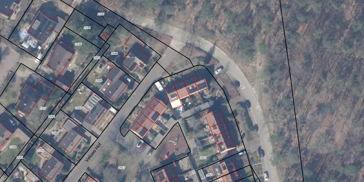 Het perceel waarop Veluws Hof 5 staat heeft een oppervlakte van 3555 m². Dit is een zeer groot perceel. De perceeloppervlakte wordt geregistreerd door het Kadaster. Gedetailleerde informatie over de maten van dit perceel kunt u vinden in het rapport Kadastrale kaart met maatvoering van Veluws Hof 5.