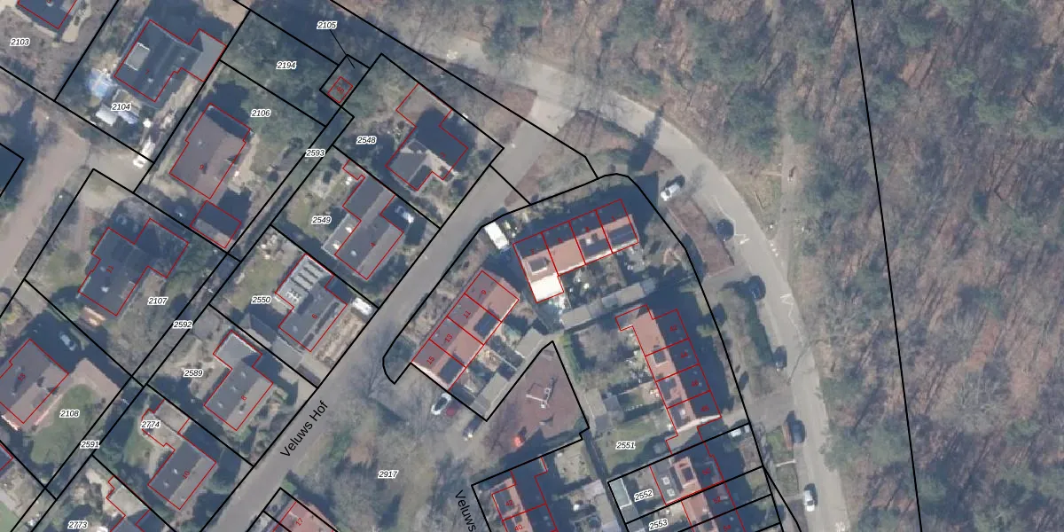 Het perceel waarop Veluws Hof 7 staat heeft een oppervlakte van 3555 m². Dit is een zeer groot perceel. De perceeloppervlakte wordt geregistreerd door het Kadaster. Gedetailleerde informatie over de maten van dit perceel kunt u vinden in het rapport Kadastrale kaart met maatvoering van Veluws Hof 7.