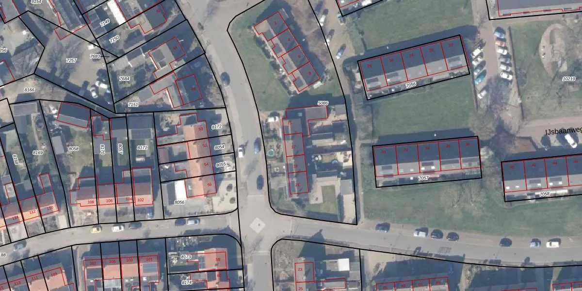 Het perceel waarop Vijverweg 17 staat heeft een oppervlakte van 2300 m². Dit is een zeer groot perceel. De perceeloppervlakte wordt geregistreerd door het Kadaster. Gedetailleerde informatie over de maten van dit perceel kunt u vinden in het rapport Kadastrale kaart met maatvoering van Vijverweg 17.