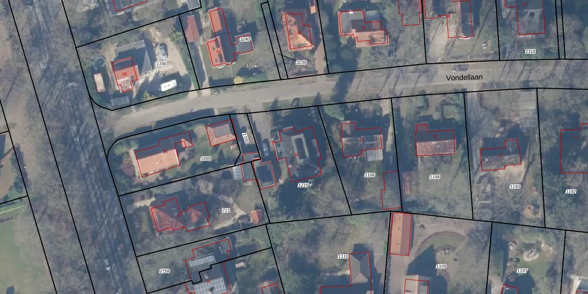 Het perceel waarop Vondellaan 29 staat heeft een oppervlakte van 1020 m². Dit is een zeer groot perceel. De perceeloppervlakte wordt geregistreerd door het Kadaster. Gedetailleerde informatie over de maten van dit perceel kunt u vinden in het rapport Kadastrale kaart met maatvoering van Vondellaan 29.
