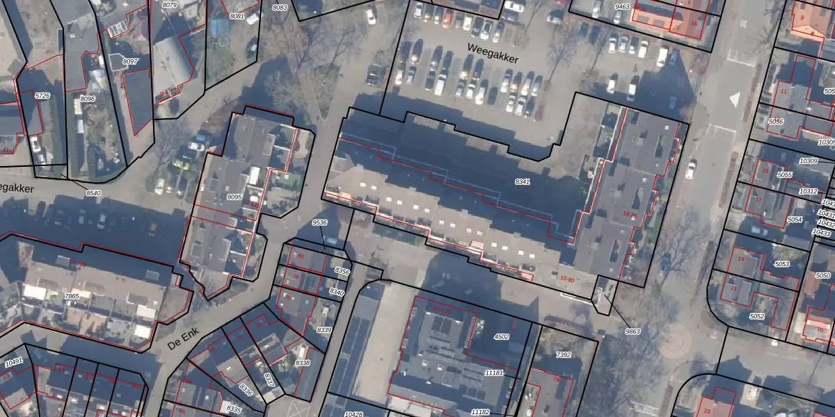 Het perceel waarop Weegakker 54 staat heeft een oppervlakte van 2640 m². Dit is een zeer groot perceel. De perceeloppervlakte wordt geregistreerd door het Kadaster. Gedetailleerde informatie over de maten van dit perceel kunt u vinden in het rapport Kadastrale kaart met maatvoering van Weegakker 54.