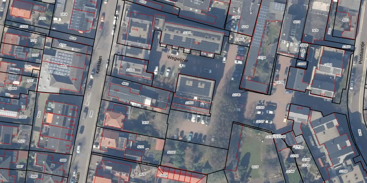 Het perceel waarop Wegwijzer 11 staat heeft een oppervlakte van 415 m². Dit is een groot perceel. De perceeloppervlakte wordt geregistreerd door het Kadaster. Gedetailleerde informatie over de maten van dit perceel kunt u vinden in het rapport Kadastrale kaart met maatvoering van Wegwijzer 11.