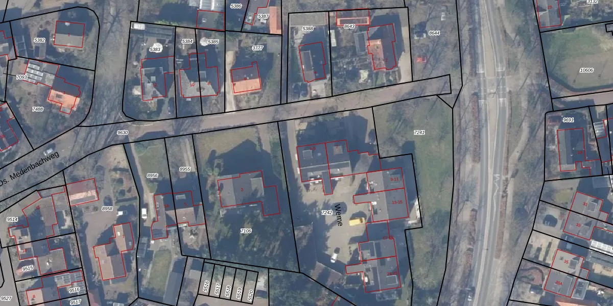 Het perceel waarop Weme 1 staat heeft een oppervlakte van 2340 m². Dit is een zeer groot perceel. De perceeloppervlakte wordt geregistreerd door het Kadaster. Gedetailleerde informatie over de maten van dit perceel kunt u vinden in het rapport Kadastrale kaart met maatvoering van Weme 1.