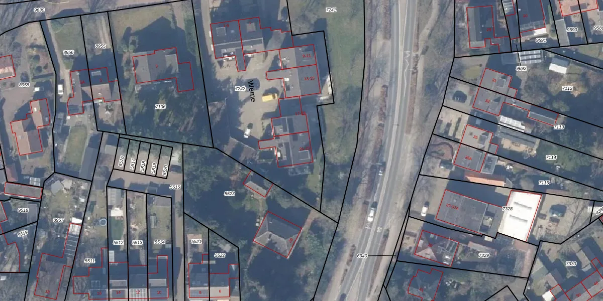 Het perceel waarop Weme 23 staat heeft een oppervlakte van 2340 m². Dit is een zeer groot perceel. De perceeloppervlakte wordt geregistreerd door het Kadaster. Gedetailleerde informatie over de maten van dit perceel kunt u vinden in het rapport Kadastrale kaart met maatvoering van Weme 23.
