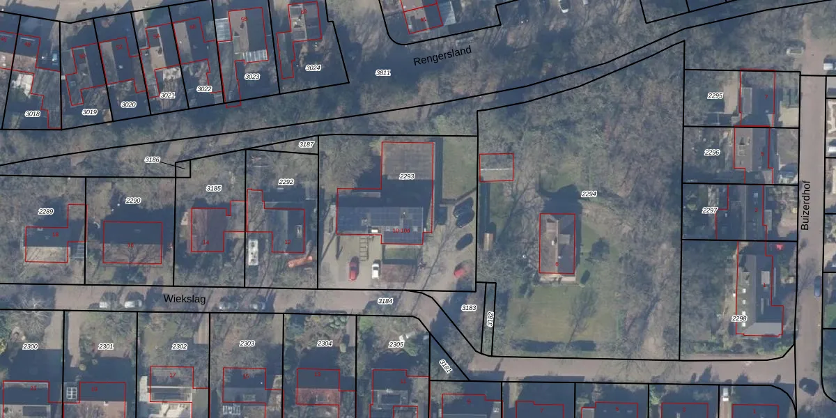 Het perceel waarop Wiekslag 10-b staat heeft een oppervlakte van 1403 m². Dit is een zeer groot perceel. De perceeloppervlakte wordt geregistreerd door het Kadaster. Gedetailleerde informatie over de maten van dit perceel kunt u vinden in het rapport Kadastrale kaart met maatvoering van Wiekslag 10-b.