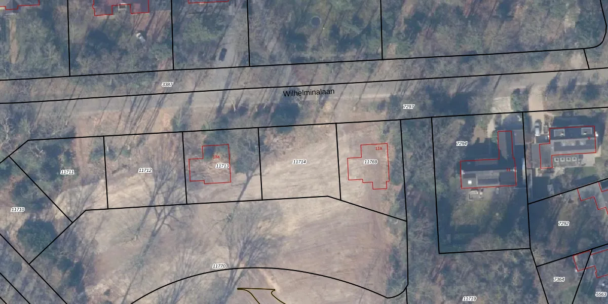 Het perceel waarop Wilhelminalaan 11-B staat heeft een oppervlakte van 615 m². Dit is een groot perceel. De perceeloppervlakte wordt geregistreerd door het Kadaster. Gedetailleerde informatie over de maten van dit perceel kunt u vinden in het rapport Kadastrale kaart met maatvoering van Wilhelminalaan 11-B.