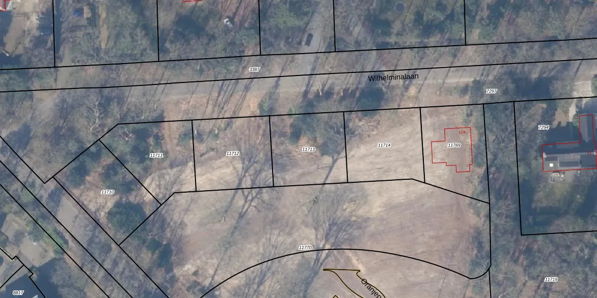 Het perceel waarop Wilhelminalaan 13-a staat heeft een oppervlakte van 595 m². Dit is een groot perceel. De perceeloppervlakte wordt geregistreerd door het Kadaster. Gedetailleerde informatie over de maten van dit perceel kunt u vinden in het rapport Kadastrale kaart met maatvoering van Wilhelminalaan 13-a.