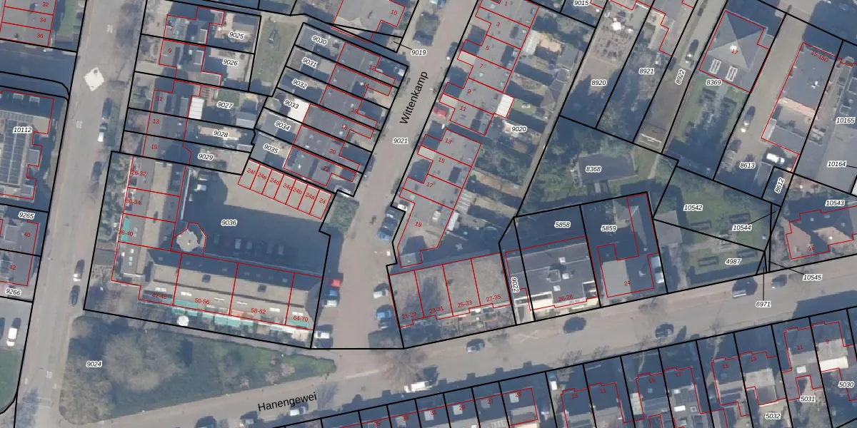 Het perceel waarop Wittenkamp 19 staat heeft een oppervlakte van 2210 m². Dit is een zeer groot perceel. De perceeloppervlakte wordt geregistreerd door het Kadaster. Gedetailleerde informatie over de maten van dit perceel kunt u vinden in het rapport Kadastrale kaart met maatvoering van Wittenkamp 19.