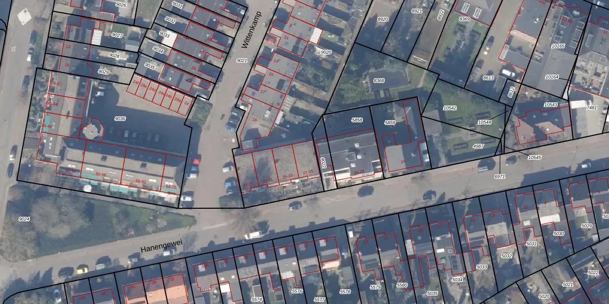 Het perceel waarop Wittenkamp 35 staat heeft een oppervlakte van 2210 m². Dit is een zeer groot perceel. De perceeloppervlakte wordt geregistreerd door het Kadaster. Gedetailleerde informatie over de maten van dit perceel kunt u vinden in het rapport Kadastrale kaart met maatvoering van Wittenkamp 35.