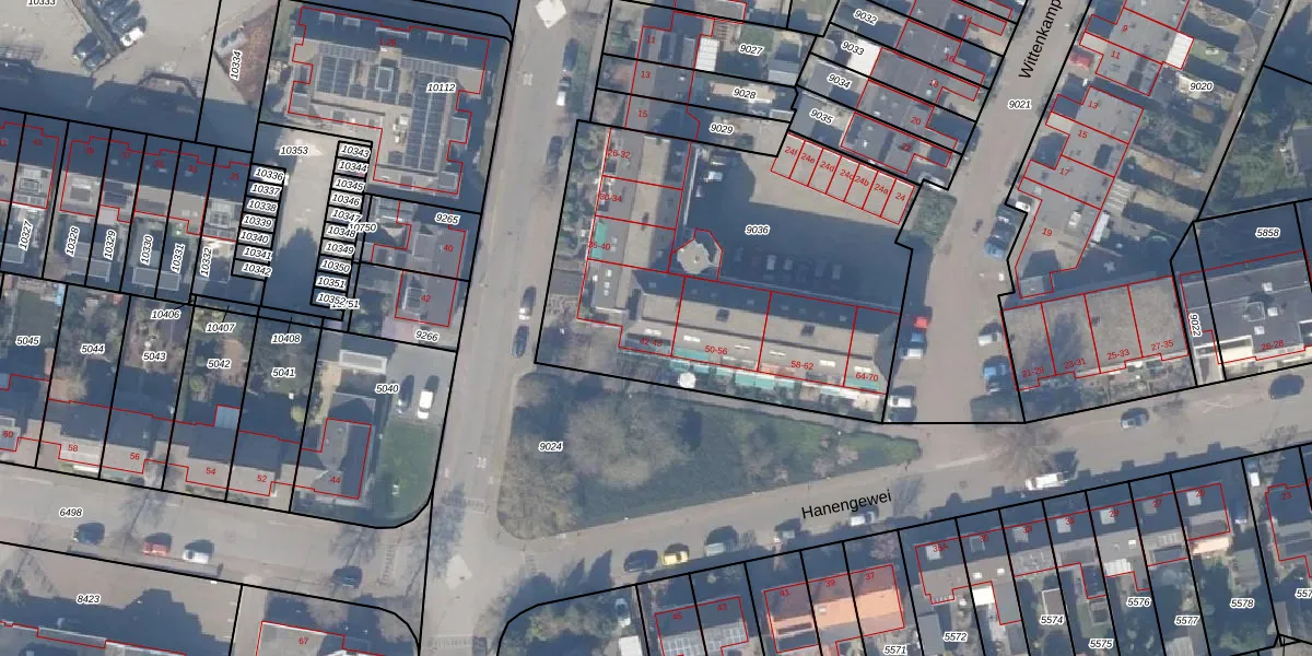 Het perceel waarop Wittenkamp 46 staat heeft een oppervlakte van 1990 m². Dit is een zeer groot perceel. De perceeloppervlakte wordt geregistreerd door het Kadaster. Gedetailleerde informatie over de maten van dit perceel kunt u vinden in het rapport Kadastrale kaart met maatvoering van Wittenkamp 46.