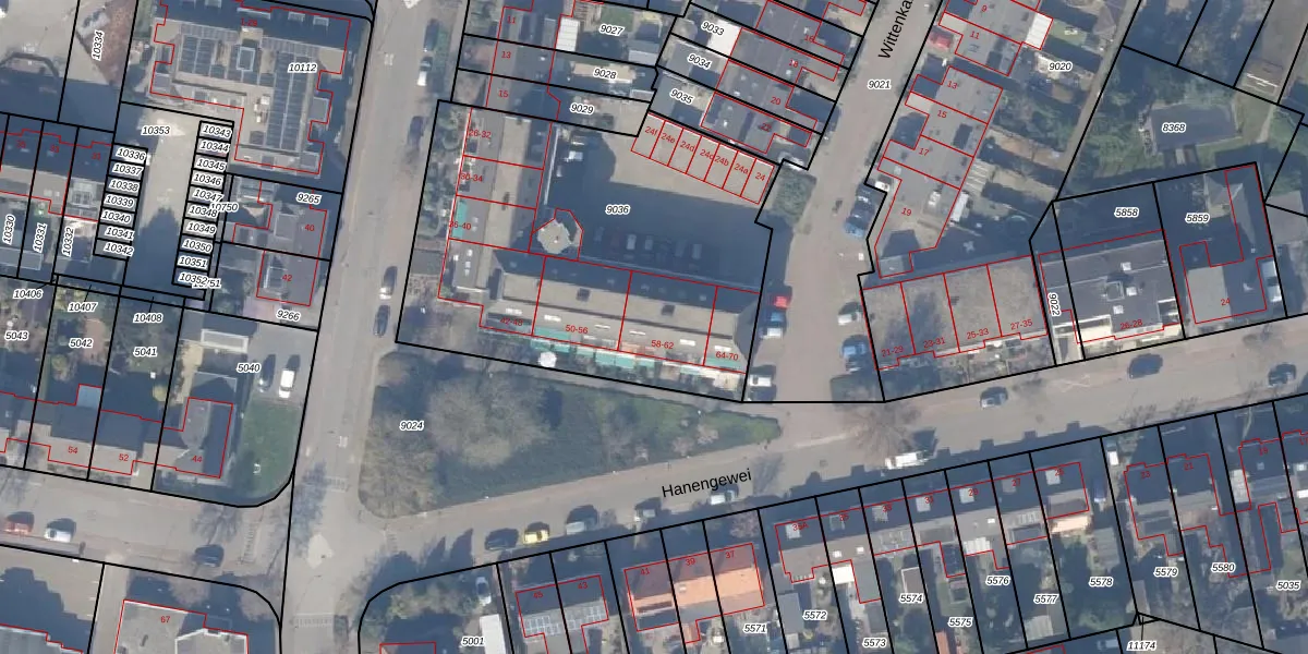 Het perceel waarop Wittenkamp 62 staat heeft een oppervlakte van 1990 m². Dit is een zeer groot perceel. De perceeloppervlakte wordt geregistreerd door het Kadaster. Gedetailleerde informatie over de maten van dit perceel kunt u vinden in het rapport Kadastrale kaart met maatvoering van Wittenkamp 62.