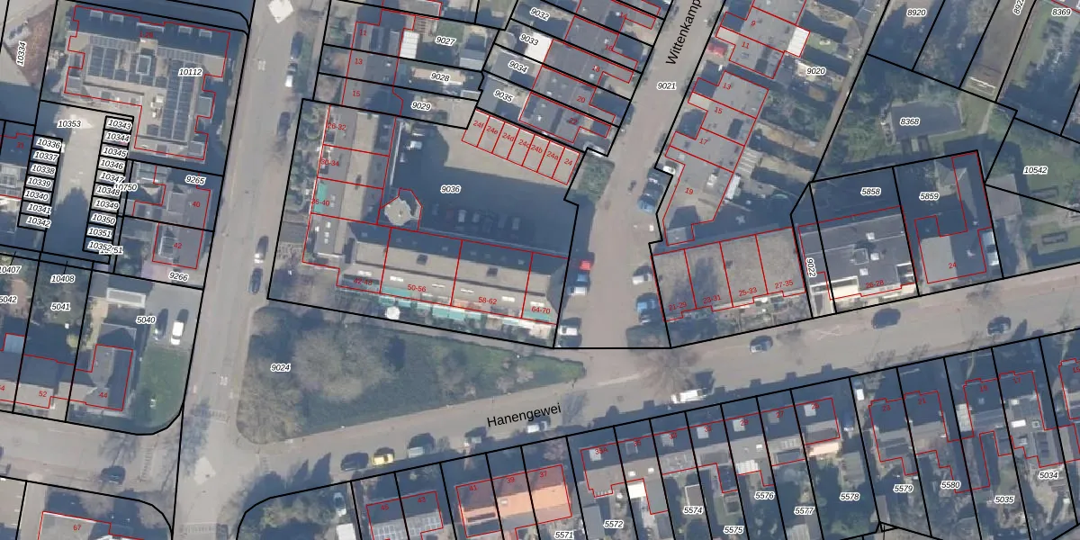 Het perceel waarop Wittenkamp 64 staat heeft een oppervlakte van 1990 m². Dit is een zeer groot perceel. De perceeloppervlakte wordt geregistreerd door het Kadaster. Gedetailleerde informatie over de maten van dit perceel kunt u vinden in het rapport Kadastrale kaart met maatvoering van Wittenkamp 64.