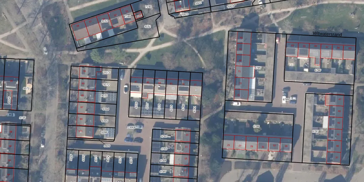 Het perceel waarop Witwatersrand 79 staat heeft een oppervlakte van 171 m². Dit is een middelgroot perceel. De perceeloppervlakte wordt geregistreerd door het Kadaster. Gedetailleerde informatie over de maten van dit perceel kunt u vinden in het rapport Kadastrale kaart met maatvoering van Witwatersrand 79.