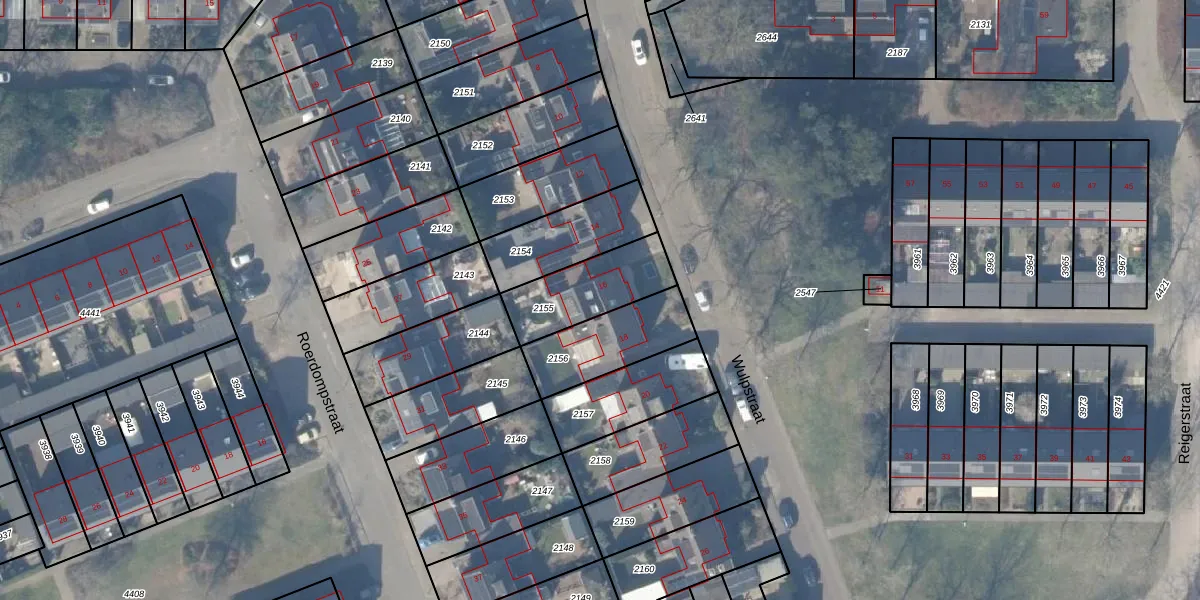 Gebruik de zoekbalk of klik op een perceel voor informatie over de adressen binnen dit perceel.