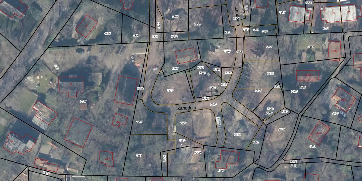 Zandduin 7 is gelegen op kadastraal perceel EML00I7379. Deze kadastrale aanduiding is uniek en wordt gebruikt door het Kadaster om eigendomsrechten en andere zakelijke rechten vast te leggen. Het perceel maakt onderdeel uit van de kadastrale gemeente Ermelo.