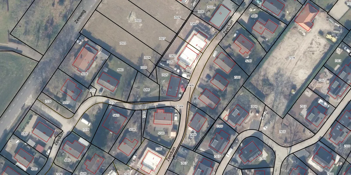 Zeeduin 5 is gelegen op kadastraal perceel EML00I7025. Deze kadastrale aanduiding is uniek en wordt gebruikt door het Kadaster om eigendomsrechten en andere zakelijke rechten vast te leggen. Het perceel maakt onderdeel uit van de kadastrale gemeente Ermelo.