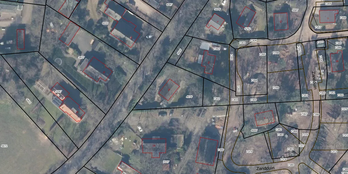 Gebruik de zoekbalk of klik op een perceel voor informatie over de adressen binnen dit perceel.