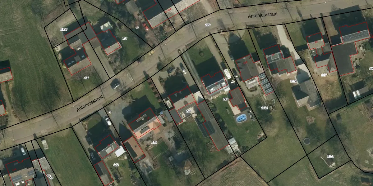 Antoniusstraat 20 is gelegen op kadastraal perceel ERP00P220. Deze kadastrale aanduiding is uniek en wordt gebruikt door het Kadaster om eigendomsrechten en andere zakelijke rechten vast te leggen. Het perceel maakt onderdeel uit van de kadastrale gemeente Erp.