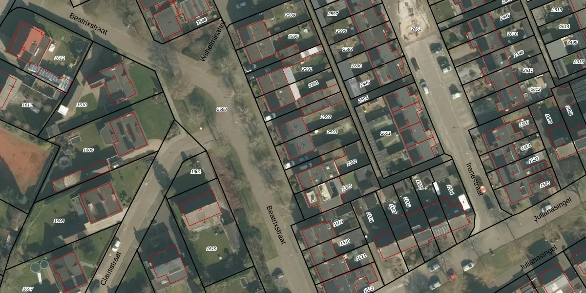 Beatrixstraat 11 is gelegen op kadastraal perceel ERP00M2593. Deze kadastrale aanduiding is uniek en wordt gebruikt door het Kadaster om eigendomsrechten en andere zakelijke rechten vast te leggen. Het perceel maakt onderdeel uit van de kadastrale gemeente Erp.