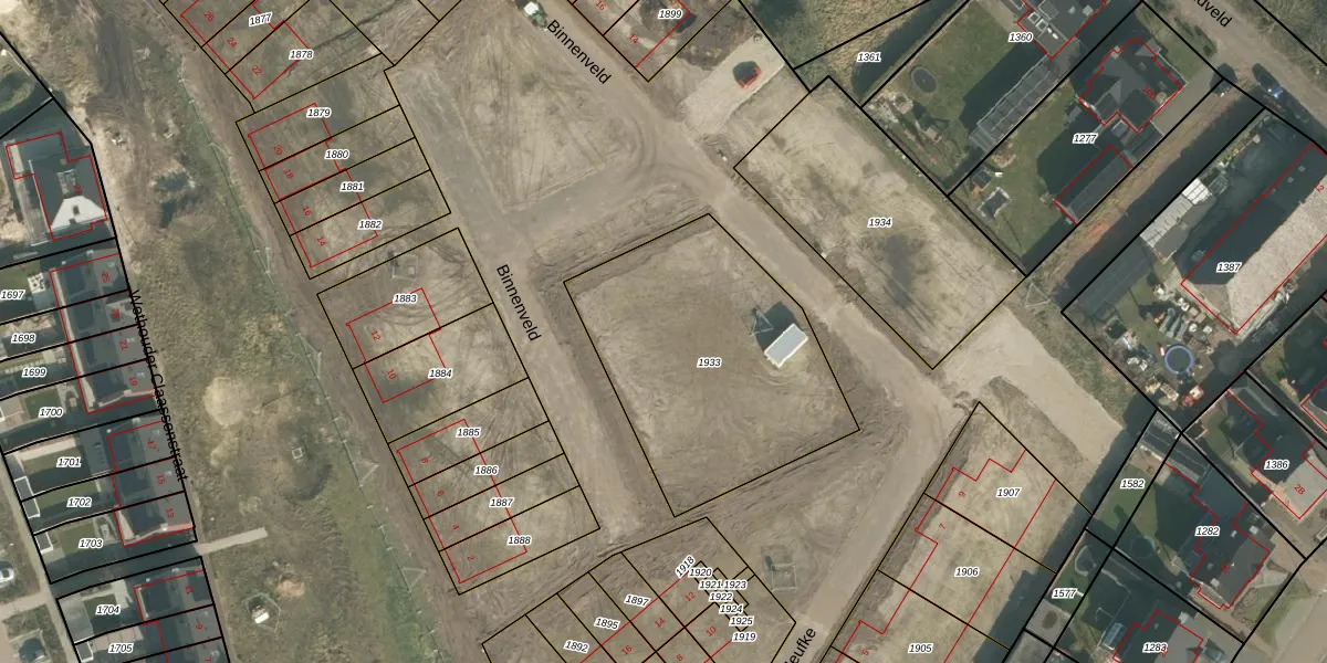 Binnenveld 13 is gelegen op kadastraal perceel ERP00R1933. Deze kadastrale aanduiding is uniek en wordt gebruikt door het Kadaster om eigendomsrechten en andere zakelijke rechten vast te leggen. Het perceel maakt onderdeel uit van de kadastrale gemeente Erp.