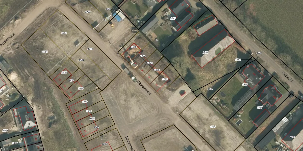 Het perceel waarop Binnenveld 16 staat heeft een oppervlakte van 132 m². Dit is een middelgroot perceel. De perceeloppervlakte wordt geregistreerd door het Kadaster. Gedetailleerde informatie over de maten van dit perceel kunt u vinden in het rapport Kadastrale kaart met maatvoering van Binnenveld 16.