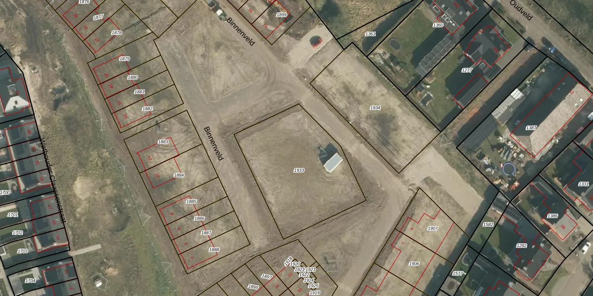 Het perceel waarop Binnenveld 7 staat heeft een oppervlakte van 1149 m². Dit is een zeer groot perceel. De perceeloppervlakte wordt geregistreerd door het Kadaster. Gedetailleerde informatie over de maten van dit perceel kunt u vinden in het rapport Kadastrale kaart met maatvoering van Binnenveld 7.