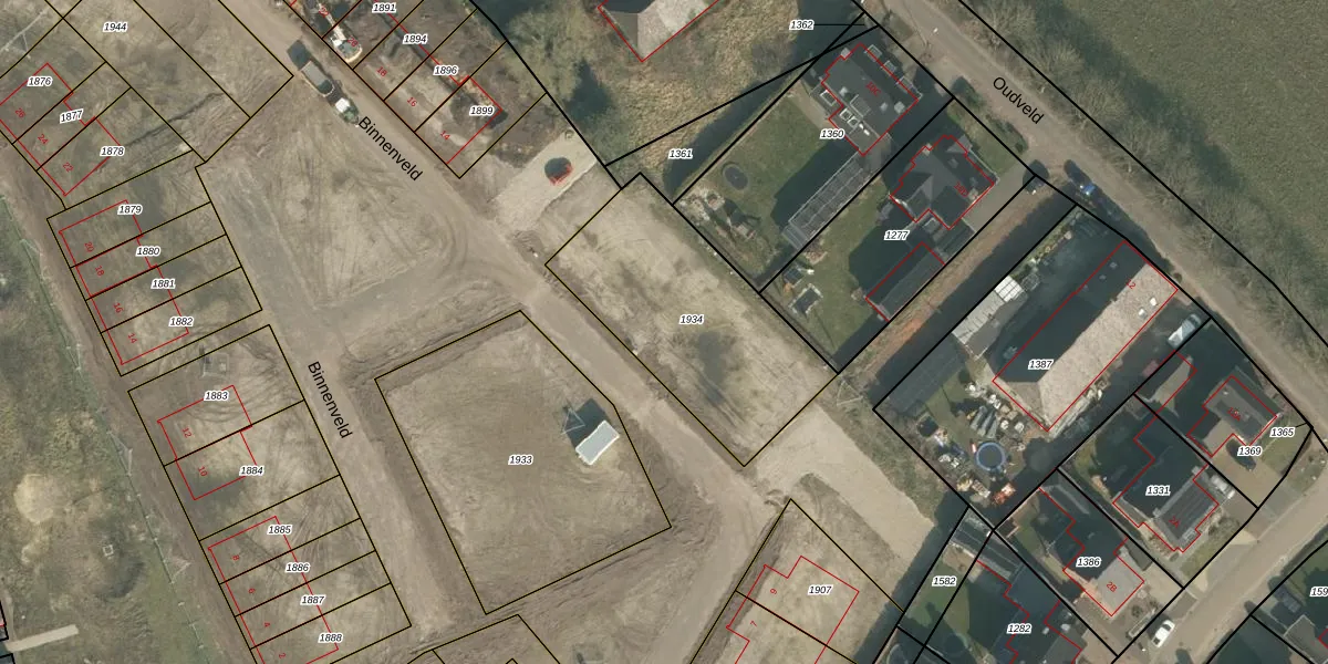 Het perceel waarop Binnenveld 8 staat heeft een oppervlakte van 852 m². Dit is een groot perceel. De perceeloppervlakte wordt geregistreerd door het Kadaster. Gedetailleerde informatie over de maten van dit perceel kunt u vinden in het rapport Kadastrale kaart met maatvoering van Binnenveld 8.