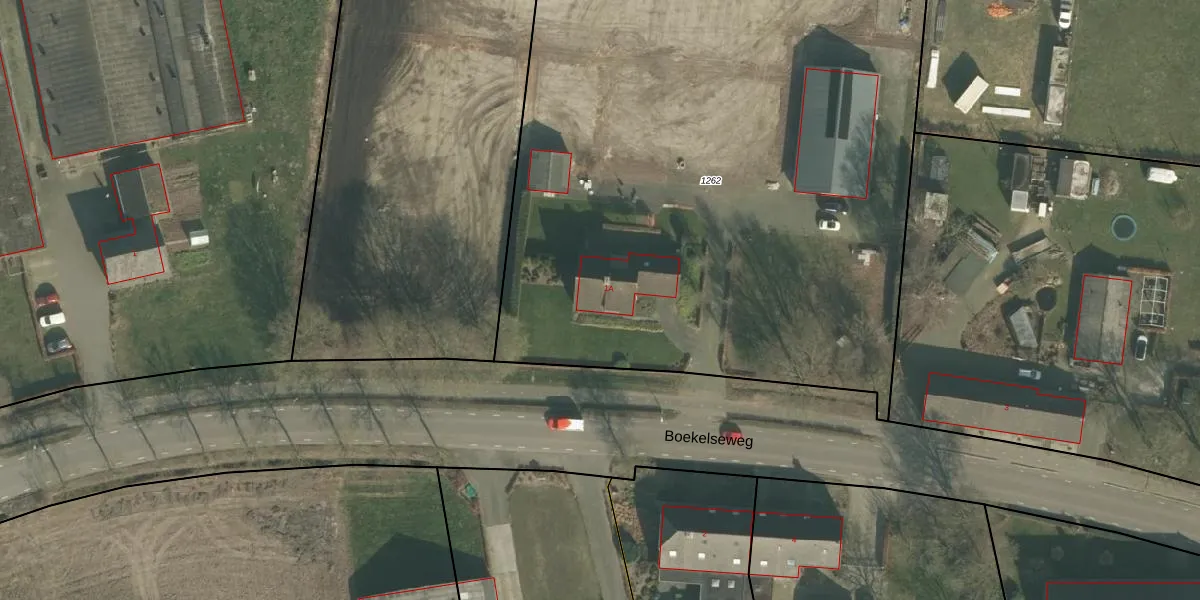 Boekelseweg 1-A is gelegen op kadastraal perceel ERP00R1262. Deze kadastrale aanduiding is uniek en wordt gebruikt door het Kadaster om eigendomsrechten en andere zakelijke rechten vast te leggen. Het perceel maakt onderdeel uit van de kadastrale gemeente Erp.